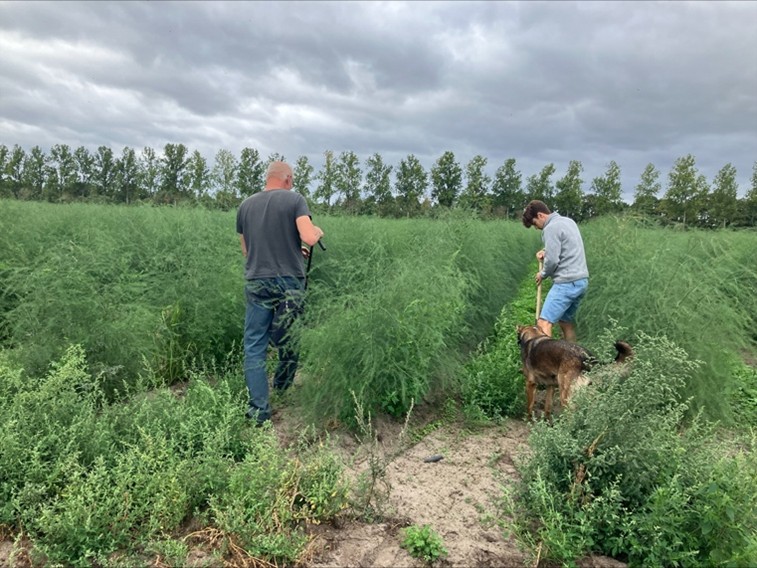 Voor het tweede bezoek van die dag gingen we langs bij Wim. Wim is biologisch akkerbouwer en teelt voornamelijk aardbeien en asperges. Dit is al het tweede jaar dat Bart bij hem langskomt, dus konden ze dieper de inhoud in. Wat zeggen onkruidsoorten over de bodemkwaliteit? Onkruid, en wat- waar opkomt, kan je veel vertellen over de bodemconditie: welke nutrienten ontbreken of zijn juist in overmaat aanwezig? Waar zitten verdichtingen, hoe zit het met de pH?
